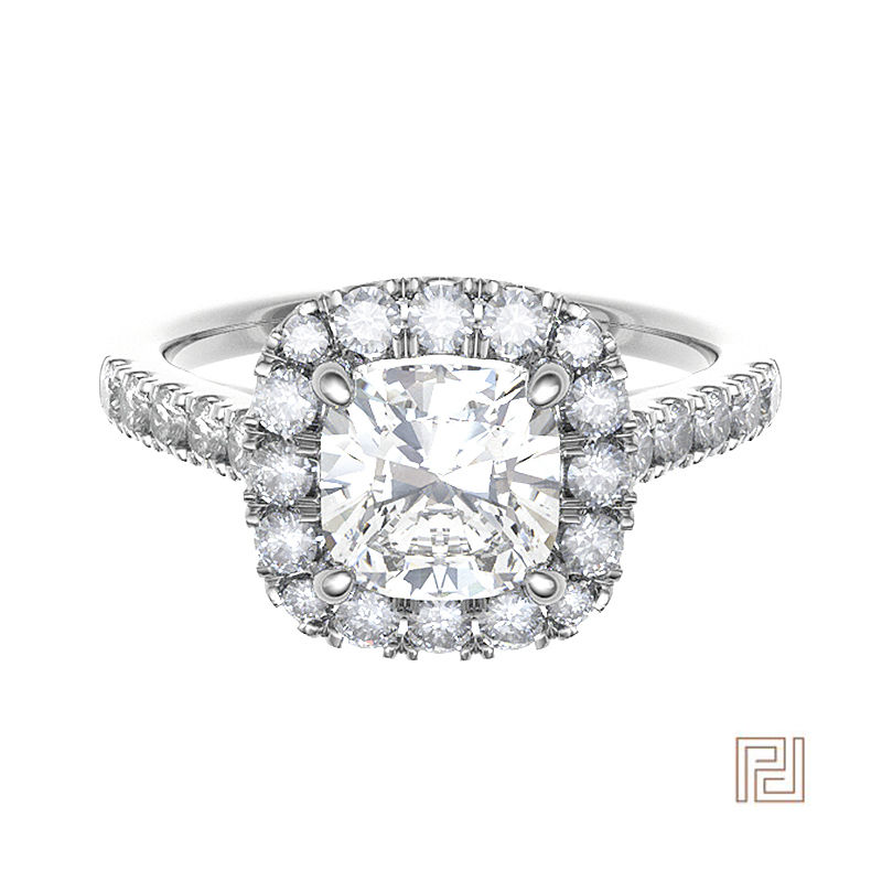 Cushion Cut Halo Pave Diamond Engagement Ring